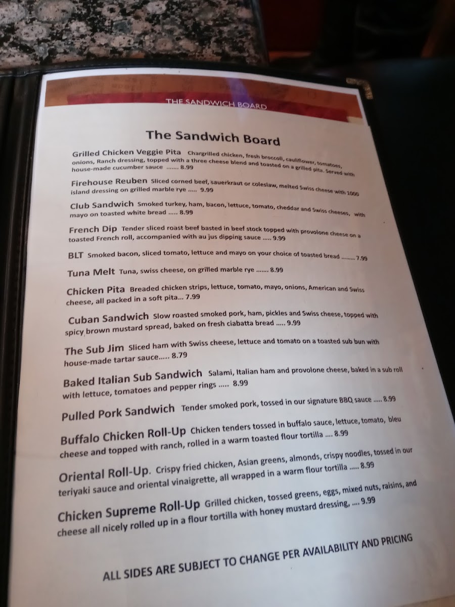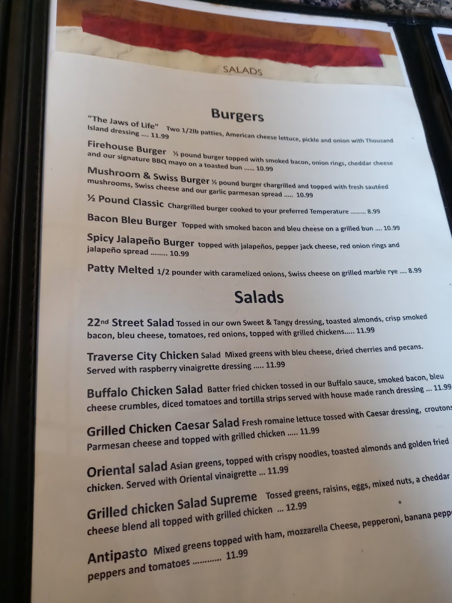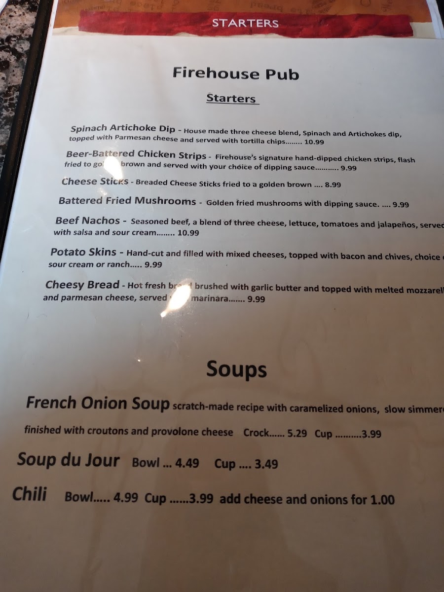 Fire House Pub Menu
